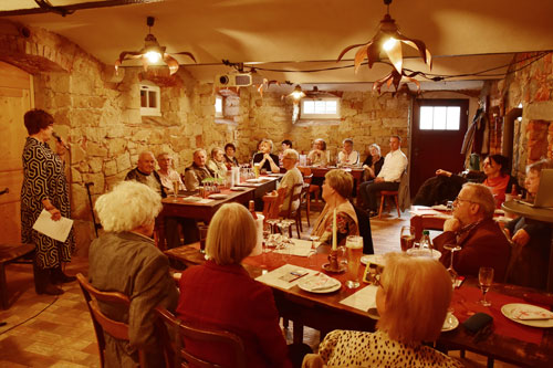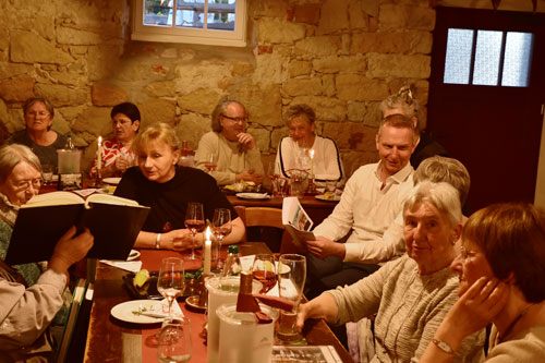Gleich neben dem Museum gibt es ein gemütliches, gepflegtes Gasthaus, wo wir uns erst mal stärkten. Im Museum wurden wir dann in die Kunst der Weberei, der Damastherstellung und der Musterentwicklung eingeführt.